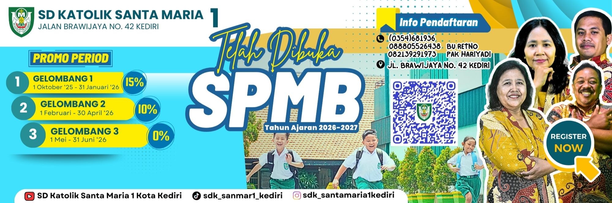SD KATOLIK SANTA MARIA 1 berdiri sejak tahun 1949. SD KATOLIK SANTA MARIA 1 telah berkembang menjadi salah satu sekolah swasta terakreditasi A di Kota Kediri. Semangat Santo Vinsensius dan Santa Louisa yang tertanam dalam benak seluruh pendidik dan pengajar menjadikan SD KATOLIK SANTA MARIA 1 semakin kuat dalam mempersiapkan masa depan.